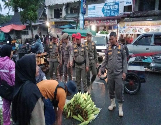 Satpol PP Kampar Tertibkan Pedagang di Badan Jalan