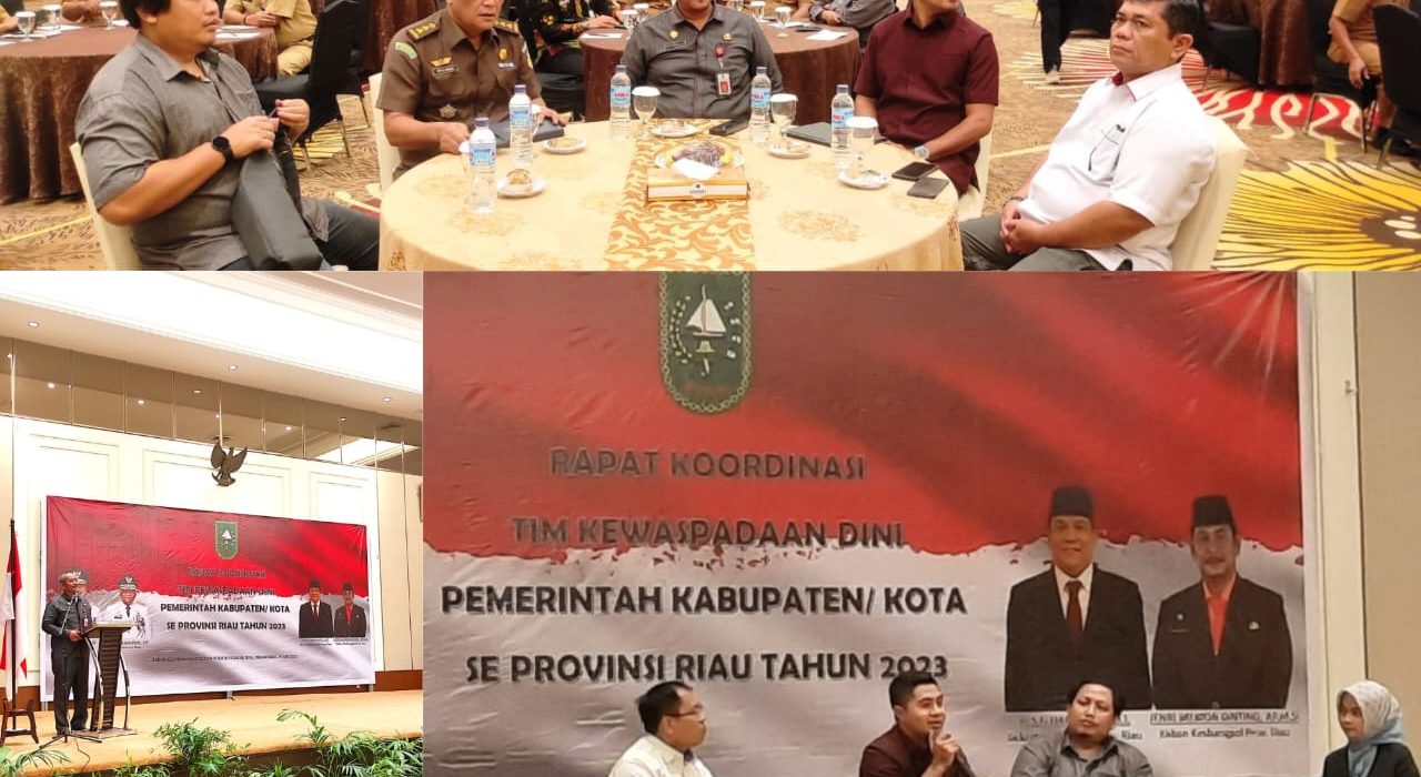 Bertempat di Hotel Mutiara Merdeka Kota Pekanbaru, Provinsi Riau, Kepala Kejaksaan Tinggi Riau Dr. Supardi yang dalam hal ini diwakili oleh Kepala Seksi Ideologi, Politik, Keamanan dan Pertahanan Bidang Intelijen Kejaksaan Tinggi Riau Eddy Monang Samosir, S.H., M.H menghadiri kegiatan Rapat Koordinasi Tim Kewaspadaan Dini (Wasdin) Pemerintah Kabupaten / Kota Se- Provinsi Riau Tahun 2023.Senin (29/05/2023) sekira pukul 09.00 Wib.