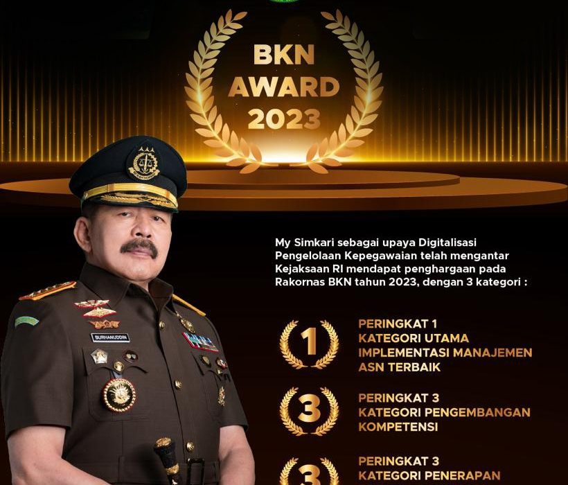 Dalam rakornas ini, Kejaksaan RI memperoleh 3 kategori penghargaan BKN Award Tahun 2023, yaitu :