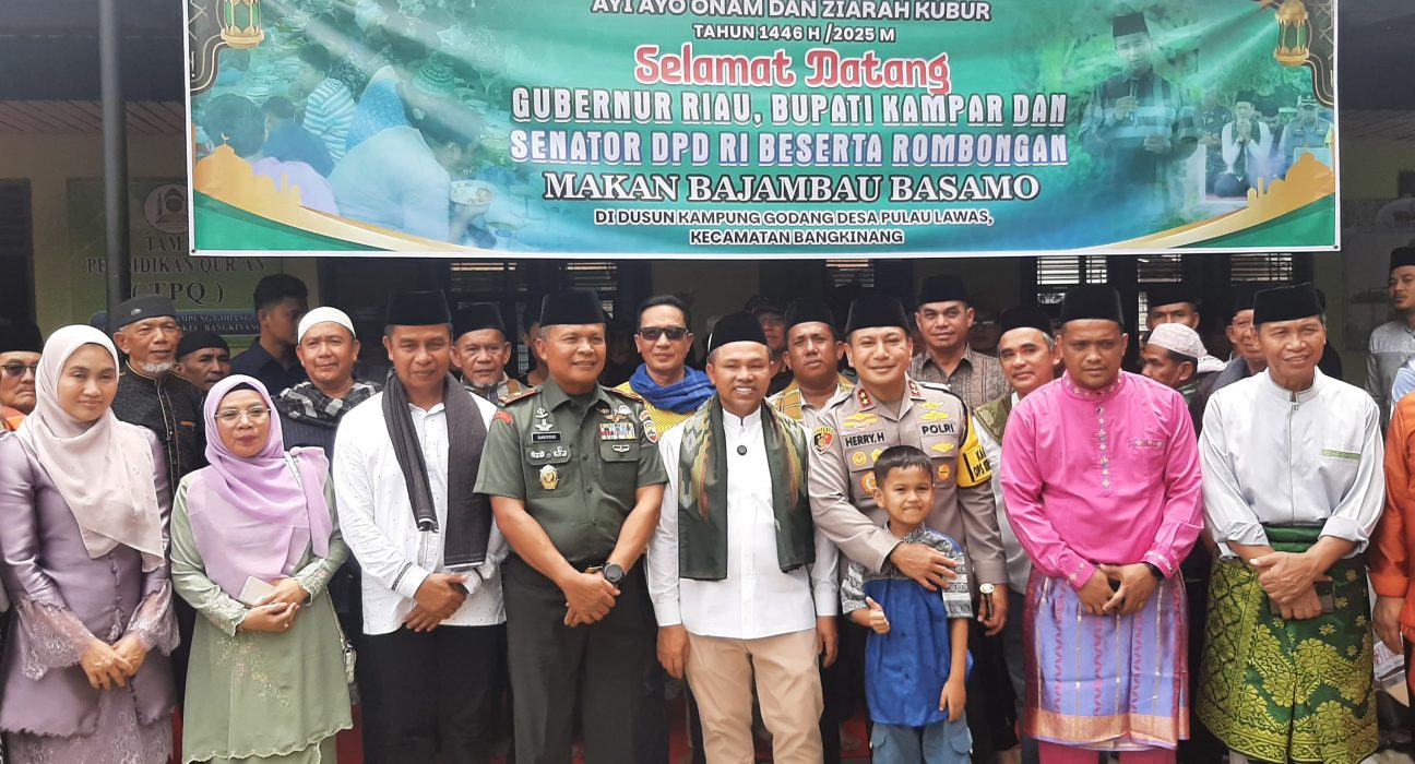 KAMPAR – Gubernur Riau H Abdul Wahid bersama Kapolda Riau, Irjen Pol Dr Herry Heryawan serta Forkopinda Provinsi menghadiri Hari Raya Enam (Aghi Ghayo Onam) Dusun Kampung Godang, Desa Pulau Lawas, Kecamatan Bangkinang Kota, Kabupaten Kampar, pada Senin (7/4/2025) pagi