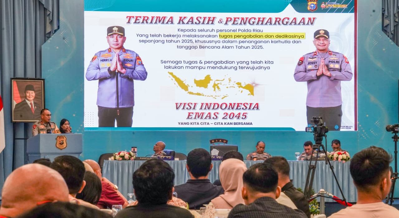 Menutup rilis akhir tahun, Kapolda Riau menyampaikan apresiasi kepada seluruh personel, masyarakat, Forkopimda, stakeholder, dan media atas dukungan selama 2025.