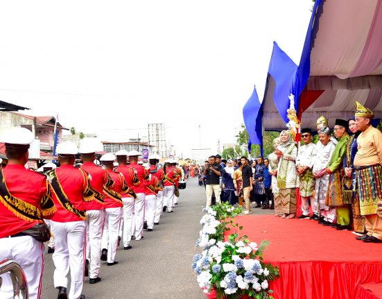 BANGKINANG – Marching band Andikha Praja Satpol PP Kabupaten Kampar ikut memeriahkan pawai ta’aruf pembukaan MTQ ke-41 tingkat Provinsi Riau