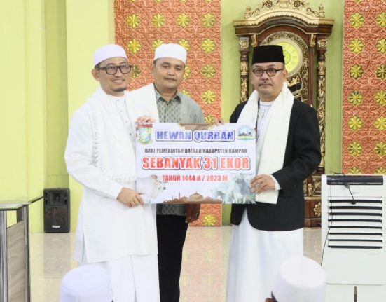 BANGKINANG – Pemerintah Kabupaten Kampar beserta masyarakat melaksanakan Salat Idul Adha bersama di Masjid Al-Ihsan Islamic Center Bangkinang, Kamis (29/6).