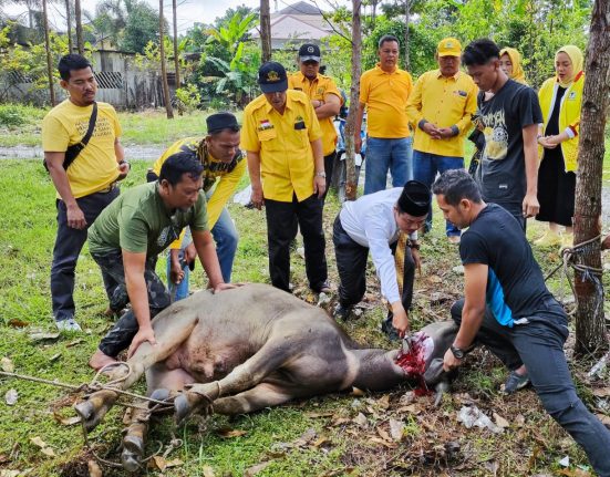 BANGKINANG – Hari Raya Idul Adha 1444 Hijriah, DPD II Golkar Kampar ikut memperingati dengan menyembelih dua ekor kerbau di
