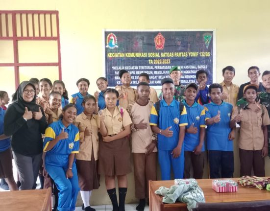 Keerom – Satgas Yonif 132/BS Pos Yamara melaksanakan kegiatan penyuluhan hukum tentang penyalahgunaan narkoba kepada siswa-siswi SMA Negeri 4 Arso