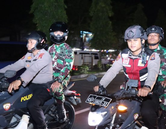 BANGKINANG – Personel Polres Kampar bersama TNI menggelar patroli gabungan skala besar di Bangkinang Kabupaten Kampar guna mewujudkan situasi kamtibmas