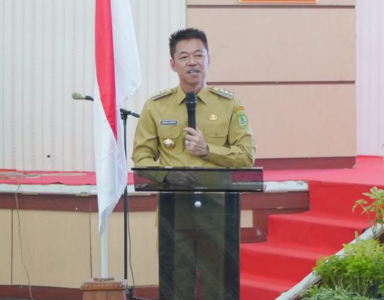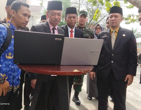 BAGANSIAPIAPI – Bupati Rokan Hilir Afrizal Sintong SIP didampingi Wakil Bupati H Sulaiman SS MH dan Kadis Kominfotik Indra Gunawan