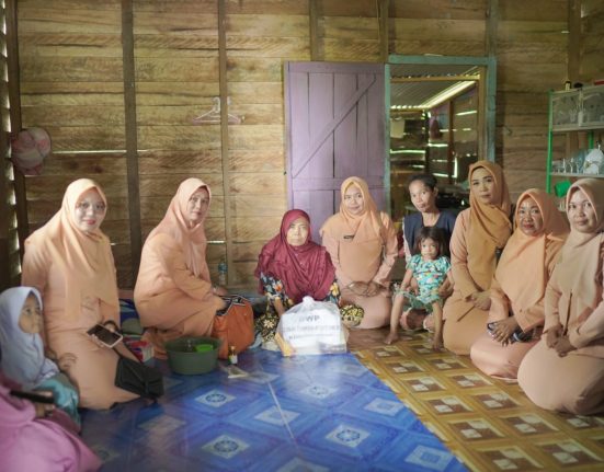 Rohil – Darma Wanita Persatuan Diskominfotiks Rokan Hilir (Rohil) laksanakan kegiatan Bakti Sosial (Baksos) dengan membagikan makanan siap saji kepada