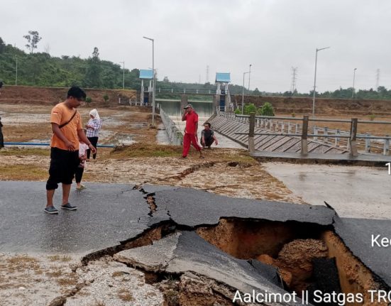 Bangkinang – Intensitas hujan yang mengguyur Kota Bangkinang sejak dari tadi malam hingga pagi hari mengakibatkan jalan menuju Kantor Bupati