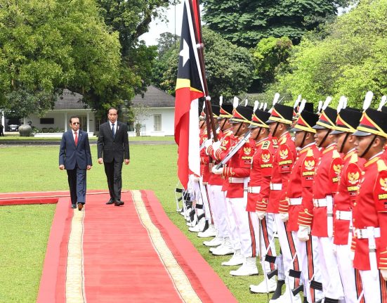 Presiden Joko Widodo menyambut kunjungan resmi Perdana Menteri (PM) Republik Demokratik Timor-Leste, Taur Matan Ruak, di Istana Kepresidenan Bogor, Kota