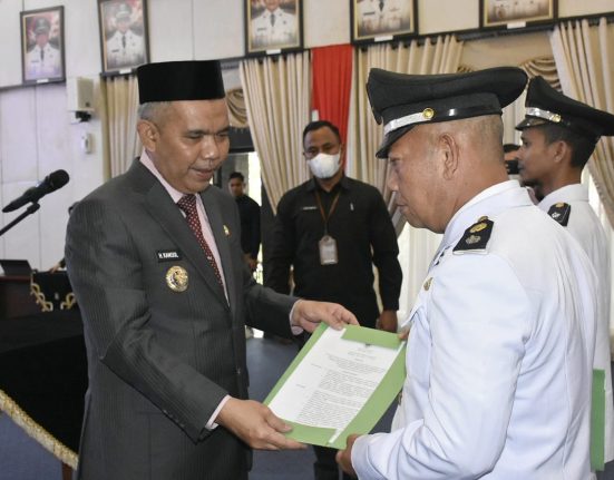Bangkinang – Pj Bupati Kampar D H Kamsol MM melantik dua kepala desa (kades) yakni Kades Pulau Permai Kecamatan Tambang