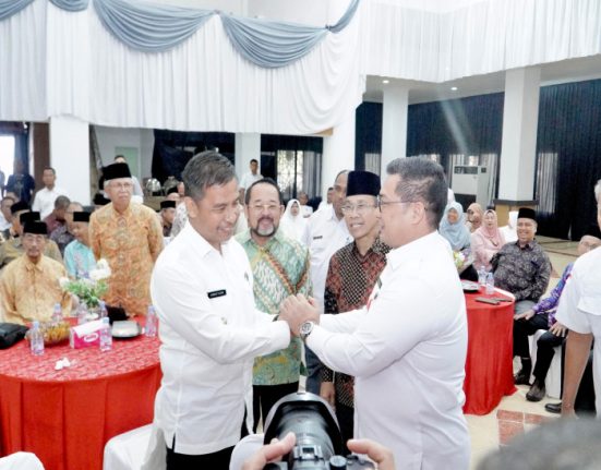 Salo – Bupati Kampar Ahmad Yuzar SSos MT bersama Wakil Bupati Kampar Dr Hj Misharti Sag MSi menghadiri acara silaturahmi