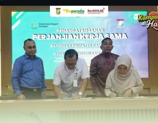 Bangkinang – Badan Pendapatan Daerah (Bapenda) Kabupaten Kampar menjalin kerja sama dengan Kejaksaan Negeri (Kejari) Kampar dalam bidang penanganan masalah