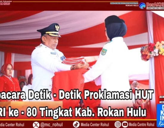 Rokan Hulu – Bupati Rokan Hulu (Rohul) Anton ST MM bertindak sebagai Inspektur Upacara penurunan bendera merah putih pada peringatan