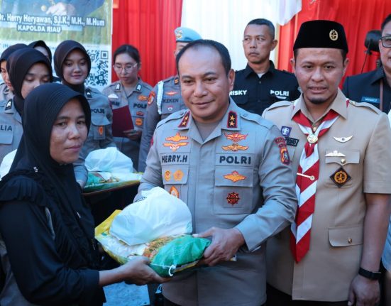 Pekanbaru – Polda Riau bersama Perum Bulog Kanwil Riau-Kepri menggelar Gerakan Pangan Murah (GPM) di Mapolsek Sukajadi, Kamis (14/8/2025). Kegiatan