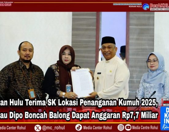 Rokan Hulu – Pemerintah Kabupaten Rokan Hulu menerima Surat Keputusan (SK) Penetapan Lokasi Penanganan Kawasan Kumuh Tahun Anggaran 2025 dari