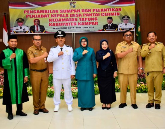 BANGKINANG – Pj Bupati Kampar diwakili Pj Sekda Kampar Ramlah melakukan pengambilan sumpah jabatan sekaligus melantik Rusli Wahid sebagai Pj