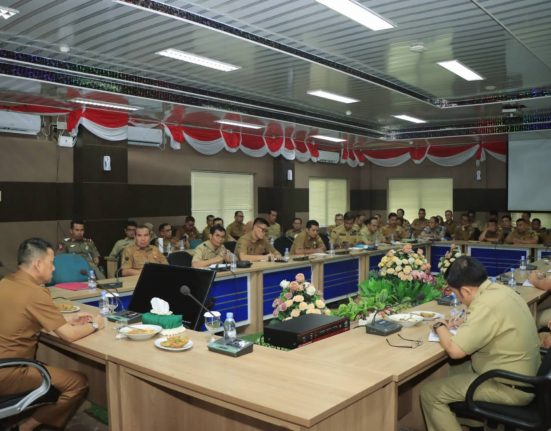 BANGKINANG – Pj Bupati Kampar Hambali didampingi Plh Sekda Kampar Ramlah menggelar rapat kerja bersama para kepala OPD dan para