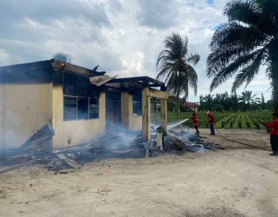 KAMPAR – Dinas Pemadam Kebakaran dan Penyelamatan Kabupaten Kampar melakukan pemadaman terhadap rumah Dinas Perkebunan di Jalan Raya Pekanbaru, Taluk