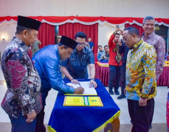 BANGKINANG – Pj Bupati Kampar H Hambali SE MBA MH diwakili Asisten II Suhermi menghadiri rapat paripurna DPRD Kampar tentang