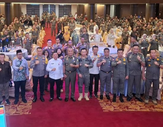 PEKANBARU – Kasatpol PP Kampar Arizon diwakili Sekretaris Ahmadi Zaki menghadiri rapat koordinasi (Rakor)!Satpol PP se-Provinsi Riau menghadapi Pilkada serentak