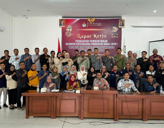 BANGKINANG – KPU Kabupaten Kampar menggelar rapat kerja pembentukan Kelompok Penyelenggara Pemungutan Suara (KPPS) dengan Panitia Pemilihan Kecamatan (PPK) se-Kabupaten