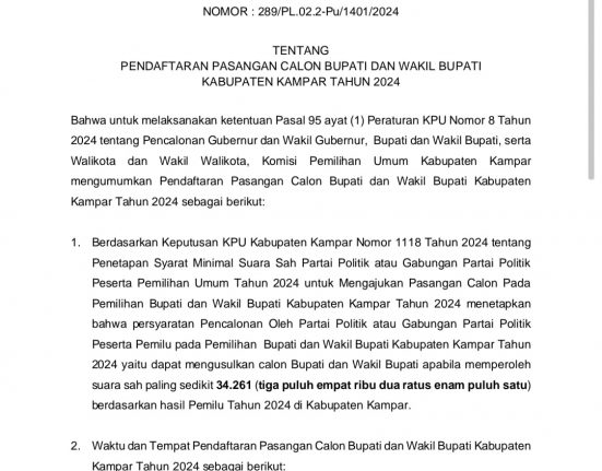 BANGKINANG – Pasangan calon bupati dan wakil bupati Kampar Yusri – Rinto Pramono yang pertama yang resmi mendaftar ke KPU