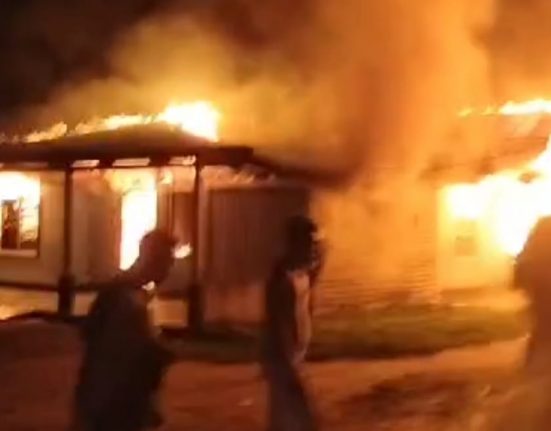 KAMPAR – Satu unit rumah semi permanen di Desa Kualu Tanjung Kudu, Kecamatan Tambang, Kabupaten Kampar hangus terbakar, Kamis (8/8/2024).
