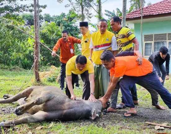 BANGKINANG – DPD Partai Golkar Kampar kembali menyembelih hewan kurban, satu ekor kerbau dan satu ekor sapi di halaman sekretariat
