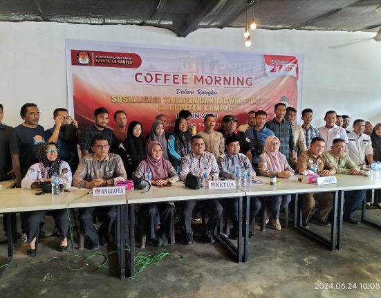 BANGKINANG – KPU Kampar menggelar coffee morning bersama media massa dalam rangka sosialisasi tahapan dan jadwal Pilkada Kabupaten Kampar, Kafe