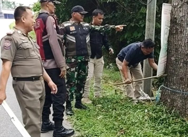 Satpol PP Kampar Tertibkan Reklame Ilegal yang Dipaku di Pohon Bangkinang Kota