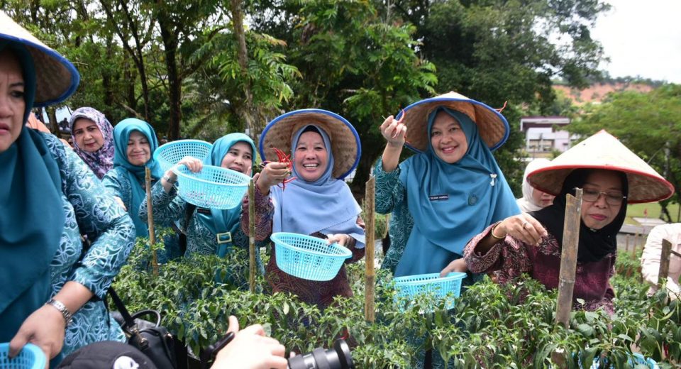 Ketua TP PKK Riau Zuliana Rahman Hadi Didampingi Ricana Djayanti Hambali Tinjau Kebun Cabe Stanum