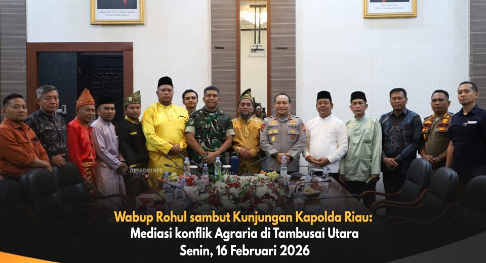 ROKAN HULU – Wakil Bupati Rokan Hulu (Rohul) H Syafaruddin Poti menyambut kunjungan kerja Kapolda Riau Irjen Pol Herry Heryawan, Senin (16/2/2026), dalam rangka memimpin langsung rapat mediasi konflik agraria di Kecamatan Tambusai Utara. Mediasi tersebut membahas sengketa lahan seluas kurang lebih 11.600 hektare eks PT Torganda, yang kini berada di bawah pengelolaan PT Agrinas, […]